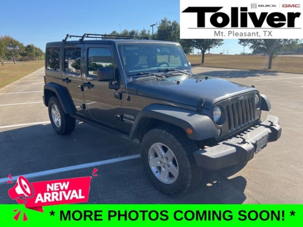 Call us TODAY!! 903-285-6646 Toliver Buick GMC is located in Mount Pleasant, Tx. Just 30 minutes East of Sulphur Springs, Tx. And 1 hour West of Texarkana, Tx. We serve many communities in North East Texas such as Sulphur Springs, Mt. Vernon, Bogata, Winnsboro, Pittsburg, and Daingerfield just to name a few. ** DELIVERY may be available! Please reach out to our sales team for more information. We have a great selection of both New and Pre-Owned vehicles. Let us help find the perfect one for you! "YOU WILL LIKE THE WAY WE TRADE!" Cold Weather Group (BF Goodrich Brand Tires, Engine Block Heater, Heated Front Seats, Heavy Duty Suspension w/Gas Shocks, and MOPAR Slush Mats), Connectivity Group (Tire Pressure Monitoring Display, Uconnect Voice Command w/Bluetooth, and Vehicle Information Center), Power Convenience Group (Auto-Dimming Mirror w/Reading Lamp, Front 1-Touch Down Power Windows, Power Heated Mirrors, Power Locks, Remote Keyless Entry, and Security Alarm), Quick Order Package 24S Sport S (17" x 7.5" Aluminum Wheels, Chrome/Leather Wrapped Shift Knob, Deep Tint Sunscreen Windows, and Leather Wrapped Steering Wheel), 1-Yr SiriusXM Radio Service, 16" x 7.0" Luxury Styled Steel Wheels, 3.21 Rear Axle Ratio, 4-Wheel Disc Brakes, 8 Speakers, ABS brakes, Air Conditioning, AM/FM radio, Audio Jack Input for Mobile Devices, Black 3-Piece Hard Top, Brake assist, CD player, Cloth Seats w/Adjustable Head Restraints, Compass, Driver door bin, Driver Height Adjuster Seat, Driver vanity mirror, Dual front impact airbags, Electronic Stability Control, Freedom Panel Storage Bag, Front anti-roll bar, Front Bucket Seats, Front Center Armrest w/Storage, Front fog lights, Integrated roll-over protection, Low tire pressure warning, Normal Duty Suspension, Occupant sensing airbag, Outside temperature display, Passenger door bin, Passenger vanity mirror, Power steering, R1234YF A/C Refrigerant, Radio: 130, Radio: 430, Rear anti-roll bar, Rear Window Defroster, Rear Window Wiper/Washer, Remote Start System, Remote USB Port, Speed control, Split folding rear seat, Steering wheel mounted audio controls, Sunrider Soft Top, Tachometer, Tilt steering wheel, Traction control, Trip computer, and Variably intermittent wipers.