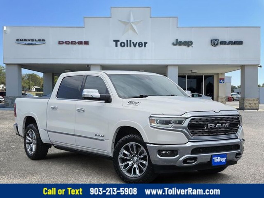 Toliver Chrysler Dodge Jeep RAM is proudly located in the charming town of Mineola, Texas, offering a convenient and welcoming experience for our valued customers. Weâre just minutes north of Lindale, approximately 35 minutes from Sulphur Springs, 2 hours east of Dallas, and 35 minutes north of Tyler, Texas. Explore our extensive selection of both new and pre-owned vehicles at our Mineola location, and donât forget that we also have additional inventory available from our other locations to ensure you find exactly what youâre looking for. Delivery options may be available. Contact our sales team for more details. Call or Text us today at (903) 213-5908! Experience why "You Will Like The Way We Trade" at Toliver Chrysler Dodge Jeep RAM Limited Level 1 Equipment Group, Protection Group, Quick Order Package 27M Limited, 1-Yr SiriusXM Guardian Trial, 10 Speakers, 12" Touchscreen Display, 33 Gallon Fuel Tank, 4-Wheel Disc Brakes, 48V Belt Starter Generator, ABS brakes, Adjustable pedals, Air Conditioning, Alloy wheels, AM/FM radio: SiriusXM with 360L, Anti-Spin Differential Rear Axle, Apple CarPlay, Apple CarPlay/Android Auto, Audio memory, Auto High-beam Headlights, Auto-dimming door mirrors, Auto-dimming Rear-View mirror, Auto-leveling suspension, Automatic temperature control, Bodyside moldings, Brake assist, Bumpers: chrome, Compass, Delay-off headlights, Disassociated Touchscreen Display, Dome Dual LED Reading Lamp, Driver door bin, Driver vanity mirror, Dual front impact airbags, Dual front side impact airbags, Dual-Pane Panoramic Sunroof, Electronic Stability Control, Emergency communication system: SiriusXM Guardian, Front anti-roll bar, Front Bucket Seats, Front Center Armrest w/Storage, Front dual zone A/C, Front fog lights, Front reading lights, Front wheel independent suspension, Fully automatic headlights, Garage door transmitter, Genuine wood console insert, Genuine wood dashboard insert, Genuine wood door panel insert, Google Android Auto, GPS Antenna Input, GPS Navigation, HD Radio, Heated door mirrors, Heated front seats, Heated rear seats, Heated steering wheel, Illuminated entry, Integrated Center Stack Radio, Leather steering wheel, LED Dome/Reading Lamp, Low tire pressure warning, Manufacturer's Statement of Origin, Memory seat, Navigation System, Occupant sensing airbag, Outside temperature display, Overhead airbag, Overhead console, Panic alarm, ParkView Rear Back-Up Camera, Passenger door bin, Passenger vanity mirror, Pedal memory, Power door mirrors, Power driver seat, Power passenger seat, Power steering, Power windows, Premium Leather Trimmed Bucket Seats, Radio data system, Radio: Uconnect 12 w/Navigation, Rain sensing wipers, Rear anti-roll bar, Rear seat center armrest, Rear step bumper, Rear window defroster, Remote CD player, Remote keyless entry, Security system, SiriusXM Satellite Radio, SiriusXM Traffic Plus, SiriusXM Travel Link, SiriusXM w/360L, Speed control, Split folding rear seat, Steering wheel mounted audio controls, Tachometer, Telescoping steering wheel, Tilt steering wheel, Traction control, Trailer Brake Control, Trip computer, Turn signal indicator mirrors, USB Host Flip, Variably intermittent wipers, Ventilated front seats, Voltmeter, Wheels: 20" x 9" Polished w/Inserts, and Wheels: 22" x 9" Polish/Painted w/Inserts.